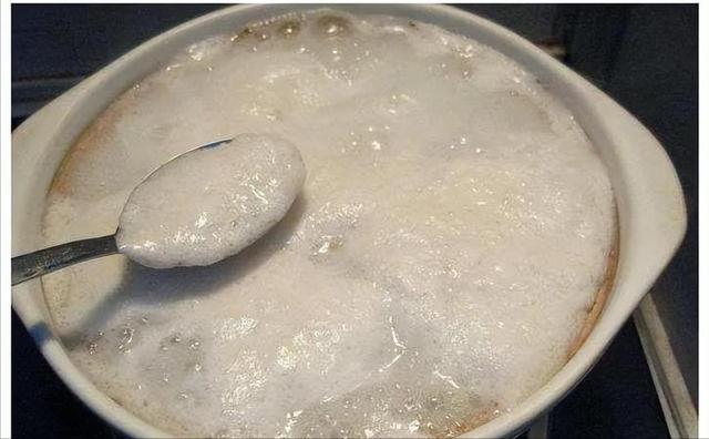 还有一个很有意思的现象,不知道你有没有发现,要是你不管这层白色的沫子,继续用大火煮,煮着煮着,它就自己消失了。